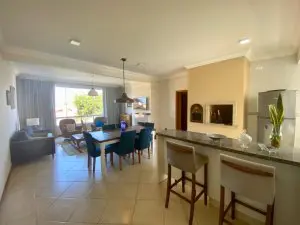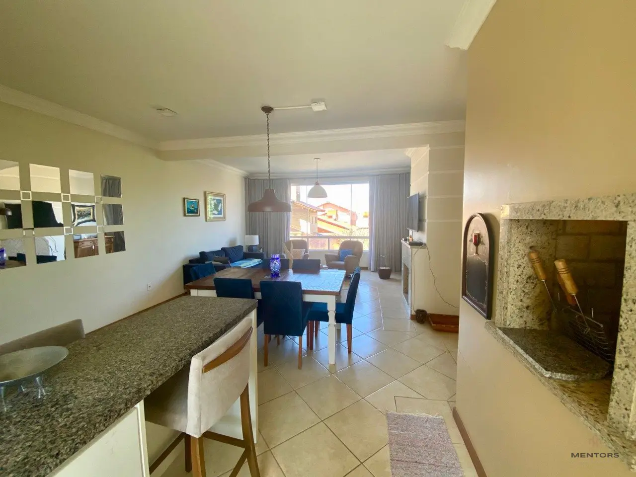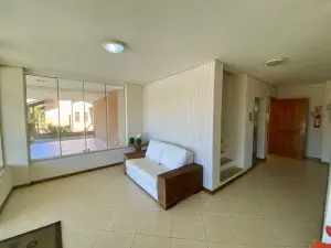 2 dormitórios sendo 1 suíte Mobiliado Livin em 3 ambientes com lareira Cozinha americana com churrasqueira Banheiro social Vaga para carro coberta