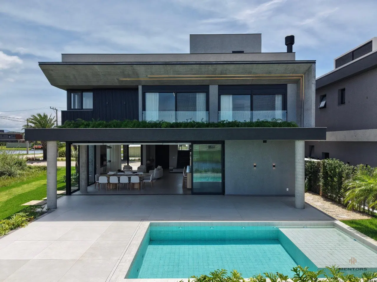O melhor custo-benefício do condomínio no Centro de Xangri-Lá. Localizada de frente para a única avenida do condomínio e ao lado de área verde, esta residência oferece mais privacidade e uma posição privilegiada dentro do empreendimento. Com 398m² de área privativa, o imóvel impressiona pelo alto padrão e pelos detalhes cuidadosamente planejados. São cinco suítes, além de dependência de empregada completa e lavabo, garantindo conforto e funcionalidade. A casa conta com persianas e cortinas motorizadas, além de um espaço gourmet completo com churrasqueira rotativa, ideal para momentos de lazer. A área externa é um verdadeiro destaque, com ampla varanda, piscina de concreto na cor areia, banheiro externo, paisagismo e sistema de irrigação. Finamente mobiliada e decorada com móveis soltos assinados Breton, a residência apresenta um padrão elevado de acabamento e sofisticação em todos os ambientes. Localizada no condomínio Amare Home Resort, um dos mais completos e modernos do litoral, que oferece paradouro à beira-mar, piscinas, salões de festas, salas de jogos, brinquedoteca, salão de beleza, academia e sauna. Uma oportunidade única para viver com exclusividade, conforto e lazer completo em Xangri-Lá.